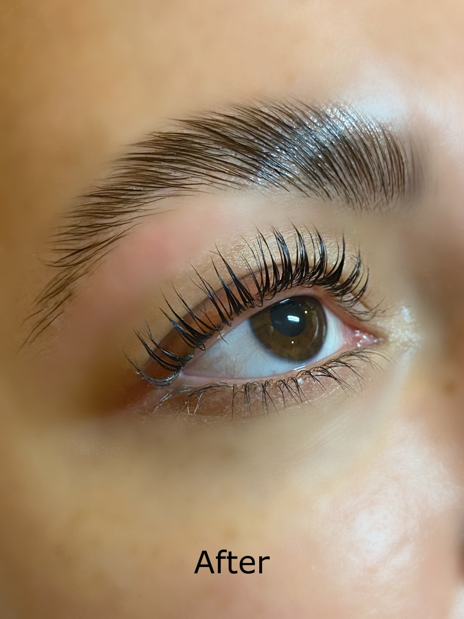 De combinatie van een brow lamination en lashlift geeft een complete, natuurlijke makeover voor zowel je wimpers als wenkbrauwen. Je wenkbrauwen worden gelift, gestyled en eventueel geverfd, voor een volle, strakke look. Terwijl je wimpers gekruld en gelift worden voor extra lengte en een intense diepe kleur. Het resultaat is een open oogopslag en perfect gestylede wenkbrauwen.
